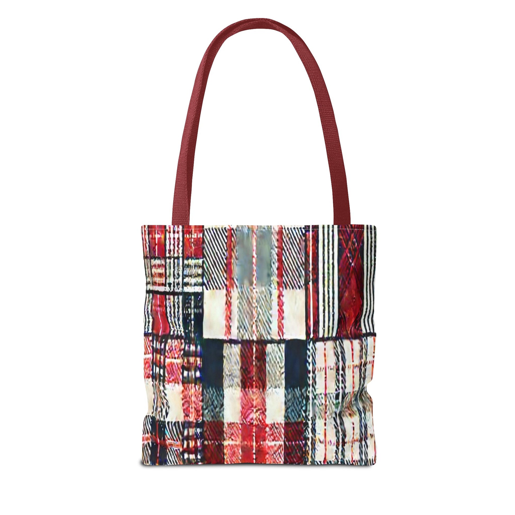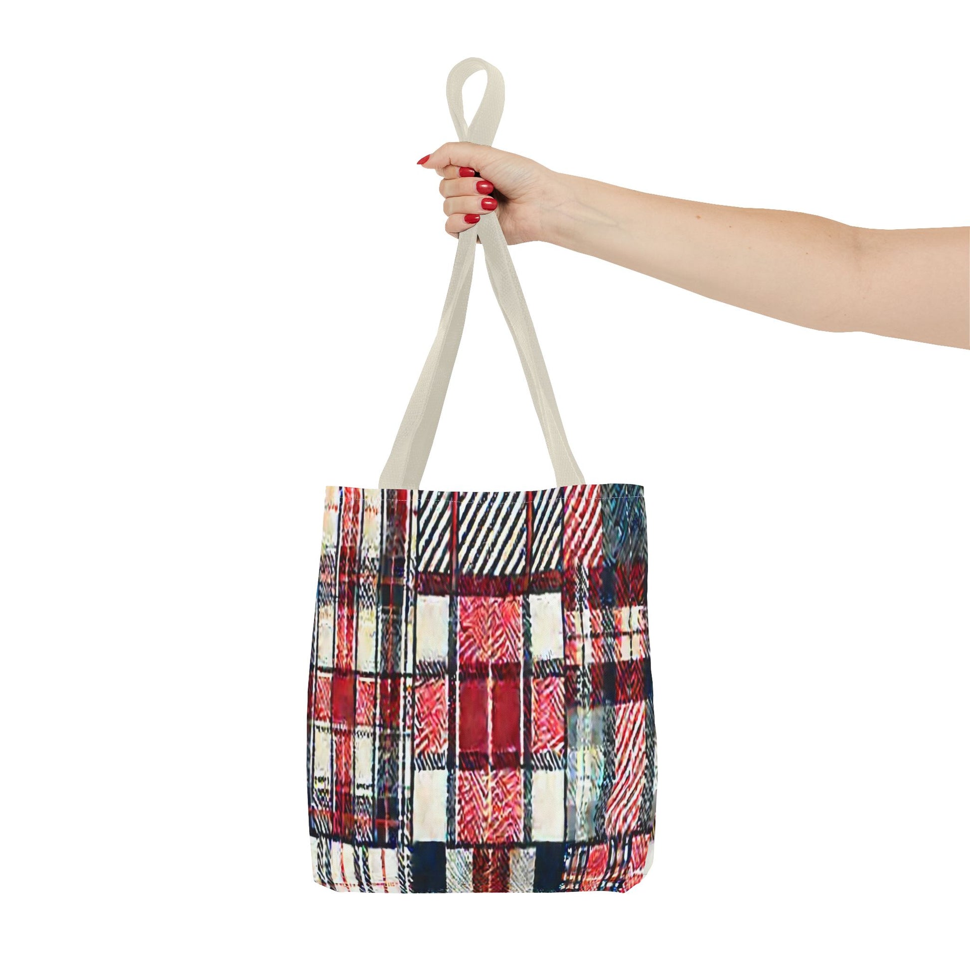Introducing a stylish and versatile Tote Bag that embodies both functionality and flair. Crafted from 100% polyester, this bag is not only durable but also retains its shape beautifully, making it an essential accessory for your everyday adventures. The vibrant plaid design adds a touch of personality, making it a perfect companion for outings, shopping trips, or as a trendy gym bag. Its spacious storage compartment can accommodate all your essentials, making it ideal for busy professionals, students, and anyone on the go. With multiple color handle options, you can easily match it to your outfits for any season. This Tote Bag is a thoughtful gift for friends and family during holidays, birthdays, or special occasions, bringing joy and practicality to their daily lives.