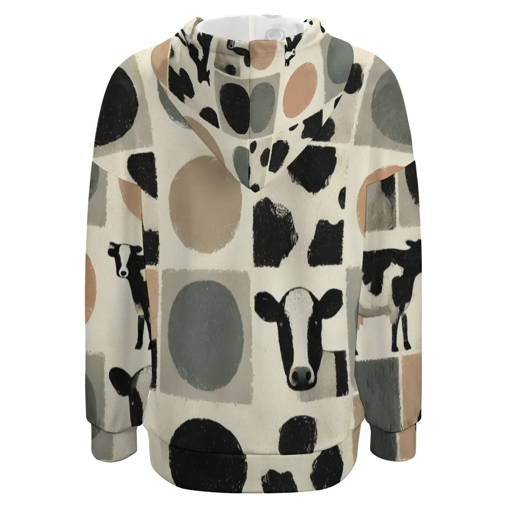 Modern Brushed Cowhide – Minimalist Spot Pattern Dropped Sleeve Hoodie