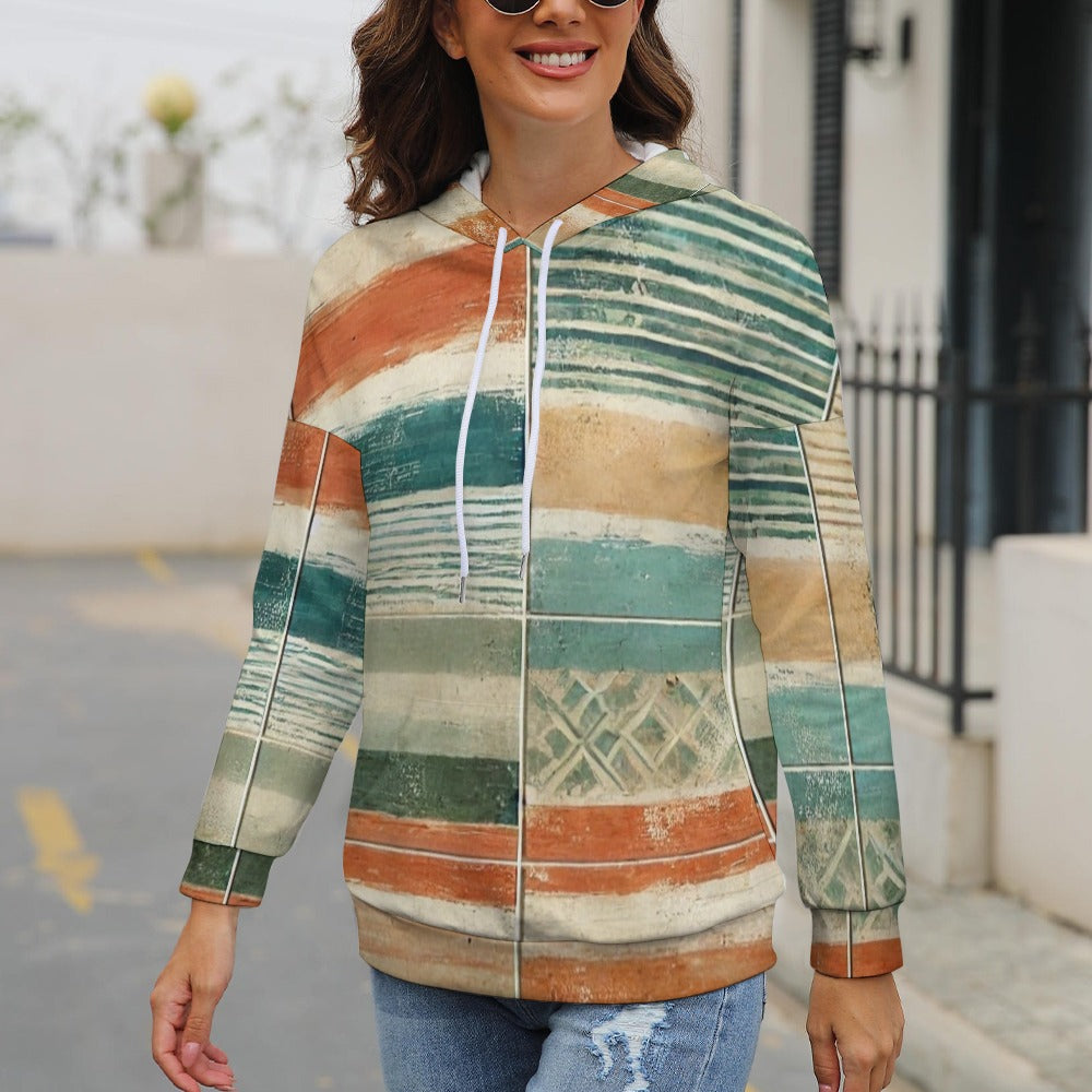 Sunwashed Coastal Stripes – Watercolour Market Pattern Dropped Sleeve Hoodie