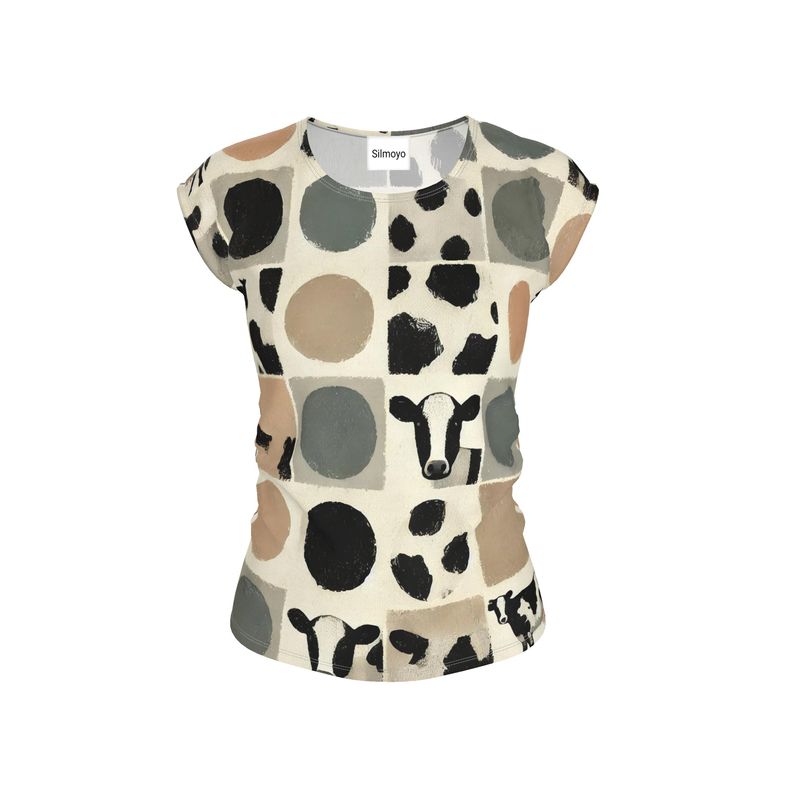 Effortlessly stylish and ultra-comfortable, our Ladies Loose Fit T-Shirt is the perfect blend of casual chic and modern design. Crafted from soft, breathable fabric, this tee drapes beautifully for a relaxed yet flattering fit. The unique abstract print — featuring earthy tones and artistic shapes — adds a touch of personality and flair to your everyday look.Features:Relaxed, loose-fit silhouette for all-day comfortLightweight, breathable material ideal for any seasonEye-catching geometric and animal-inspired patternShort sleeves and round neckline for a classic finishPerfect for pairing with jeans, shorts, or skirtsFabric: Premium cotton blendAvailable Sizes: S – XLCare Instructions: Machine wash cold, tumble dry lowBring artful charm and comfort to your wardrobe with this versatile T-shirt — made for women who love effortless style.